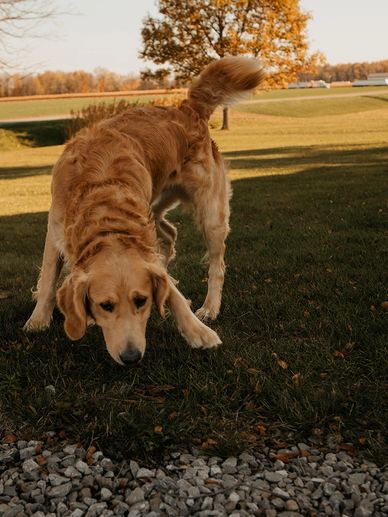 In 2017 Richard and I met. I made the trip from Dunnville to visit Richard and his dogs every other weekend and always looked forward to being greeted by some friendly and excited tail-wagging, running, and jumping, Goldens! 🐾 This crew of loving dogs quickly stole my heart and made me count down the days until I saw them again. In the fall of 2020 Richard and I got married 💍 and moved to a large property near Waterford Ontario, where we built a new kennel for our growing crew of American Retrievers!